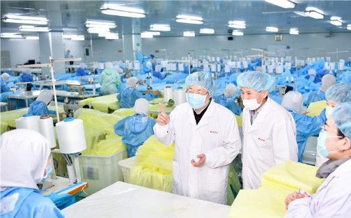 省委書記、省人大主任王東峰走進生產(chǎn)車間,認真查看醫(yī)用防護服生產(chǎn)情況,代表省委、省政府,